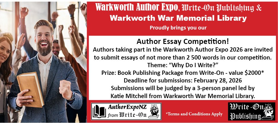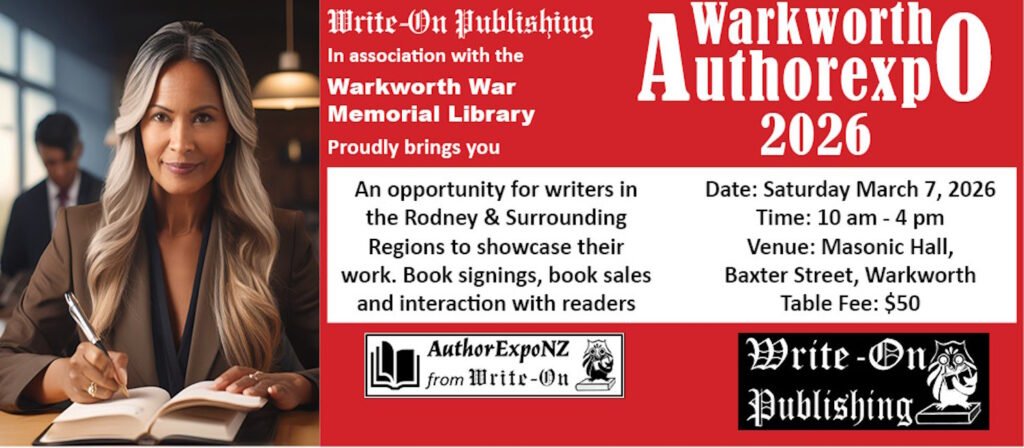 Write-On Publishing, in association with the Warkworth War Memorial Library and the Warkworth Writers’ Group, is inviting authors in the Rodney and surrounding Regions to participate in the first-ever Warkworth Author Expo!
